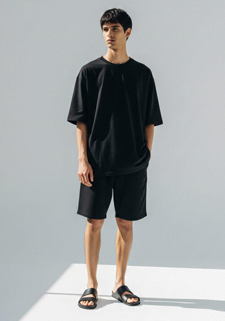 Relaxed-fit tee and shorts in soft, breathable fabric. Minimalist style for all-day comfort.